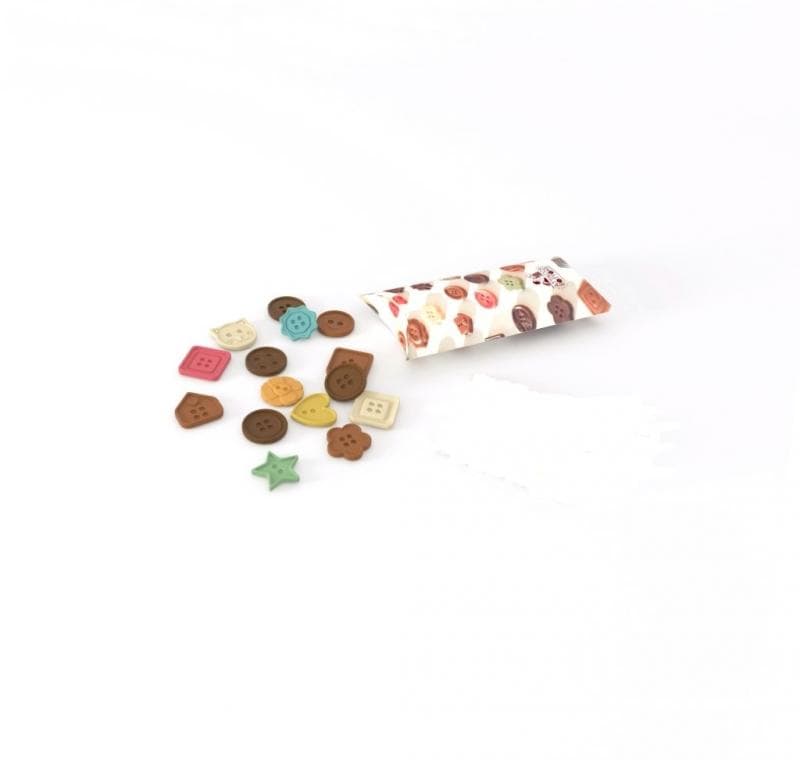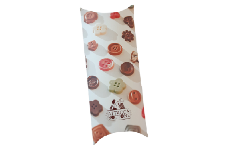 Ingredienti: zucchero, burro di cacao, latte in polvere, pasta di cacao, emulsionante: lectina di soia; aroma di vaniglia, coloranti: E102, E110, E129, E133 e E122.