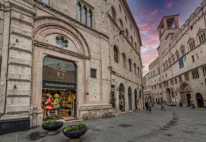 Un luogo incantevole dove la magnificenza di Palazzo Priori, il Duomo di San Lorenzo e la Fontana Maggiore incontrano la dolcezza del cioccolato creando un’atmosfera magica e indimenticabile.