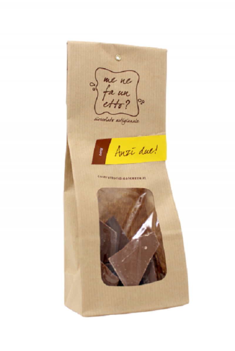 Ingredienti: zucchero, burro di cacao, latte in polvere, pasta di cacao, emulsionante: lecitina di soia; aroma naturale di vaniglia.